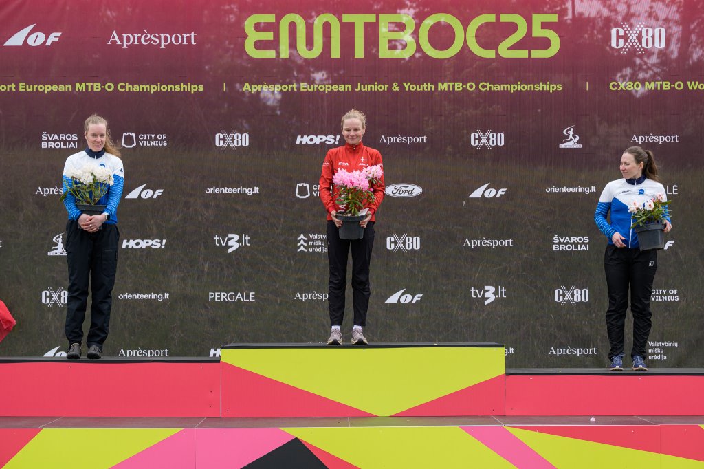 IOF World Rankings leader Nikoline Splittorff, Denmark took her second gold in the Middle Distance race today; it was a home win for Jonas Maišelis in the men’s race. The winning margins were 0.24 and 0.10.